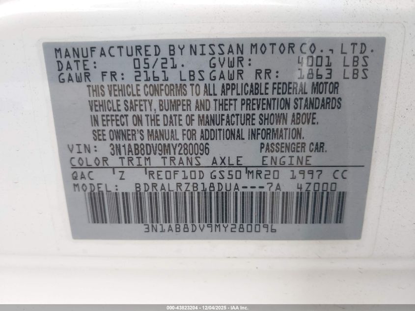 2021 NISSAN SENTRA 2021 року Бензин, 2.0, Передний привод, vin - 3N1AB8DV9MY280096 из США