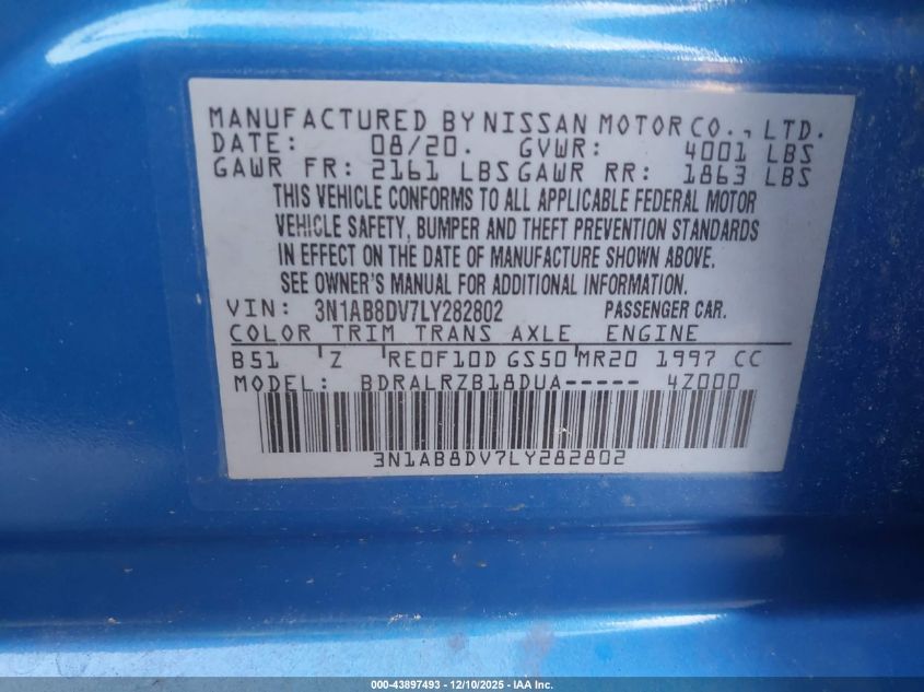 2020 NISSAN SENTRA 2020 року Бензин, 2.0, Передний привод, vin - 3N1AB8DV7LY282802 из США