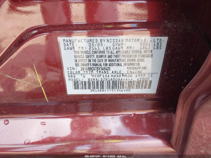 2025 NISSAN SENTRA 2025 року Бензин, 2.0, Передний привод, vin - 3N1AB8CV7SY346420 из США