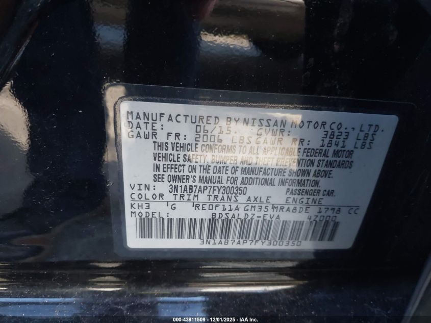 2015 NISSAN SENTRA 2015 року Бензин, 1.8, Передний привод, vin - 3N1AB7AP7FY300350 из США