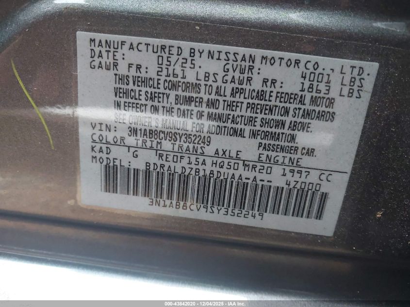 2025 NISSAN SENTRA 2025 року Бензин, 2.0, Передний привод, vin - 3N1AB8CV9SY352249 из США
