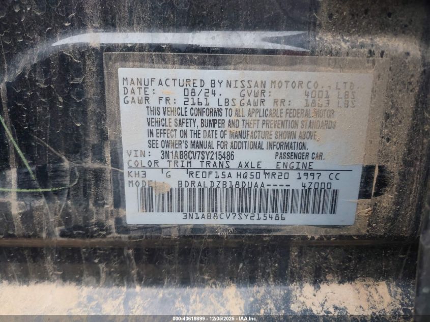 2025 NISSAN SENTRA 2025 року Бензин, 2.0, Передний привод, vin - 3N1AB8CV7SY215486 из США