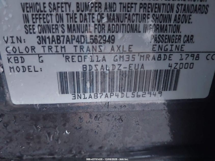 2013 NISSAN SENTRA 2013 року Бензин, 1.8, Передний привод, vin - 3N1AB7AP4DL562949 из США