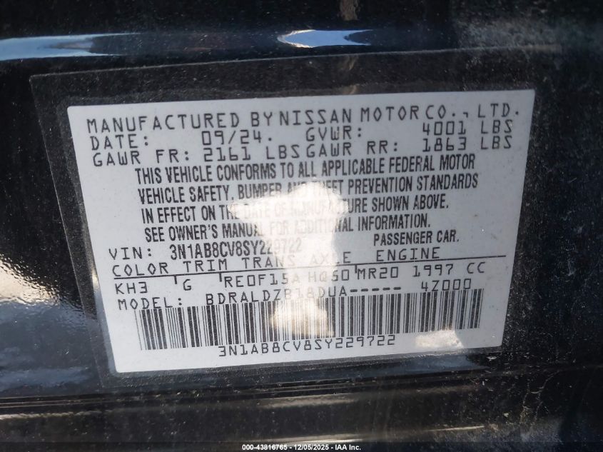 2025 NISSAN SENTRA 2025 року Бензин, 2.0, Передний привод, vin - 3N1AB8CV8SY229722 из США
