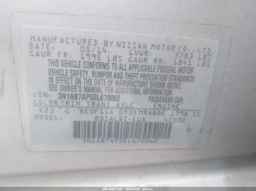 Цвет СеребряныйЦилиндры 4Привод Передний приводVIN 3N1AB7AP5EL670062Состояние Заводится и едет (проверено)Повреждения Передняя или задняя AutoRIA