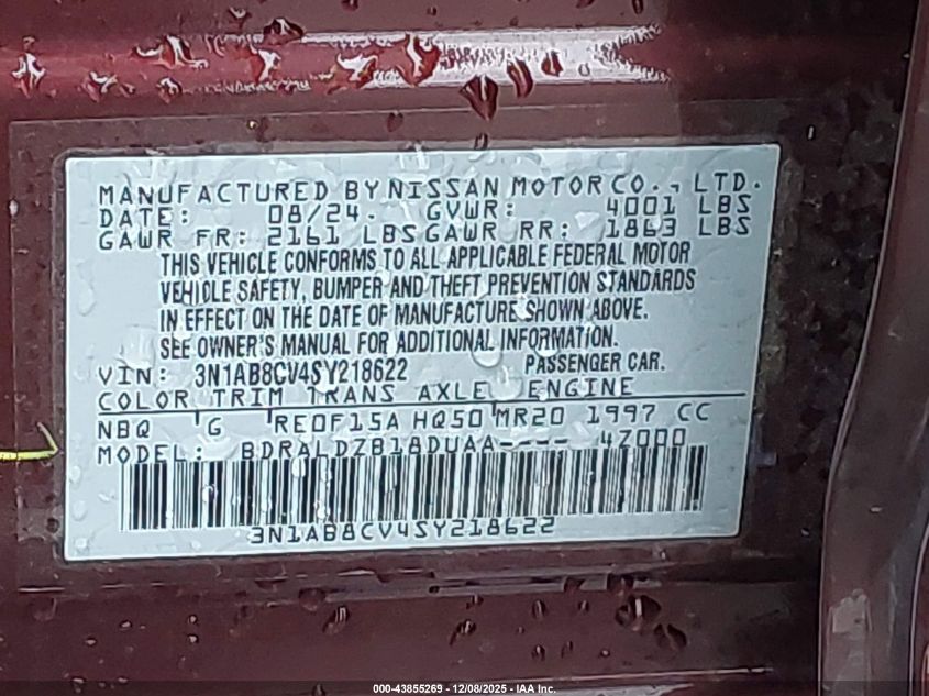 2025 NISSAN SENTRA 2025 року Бензин, 2.0, Передний привод, vin - 3N1AB8CV4SY218622 из США