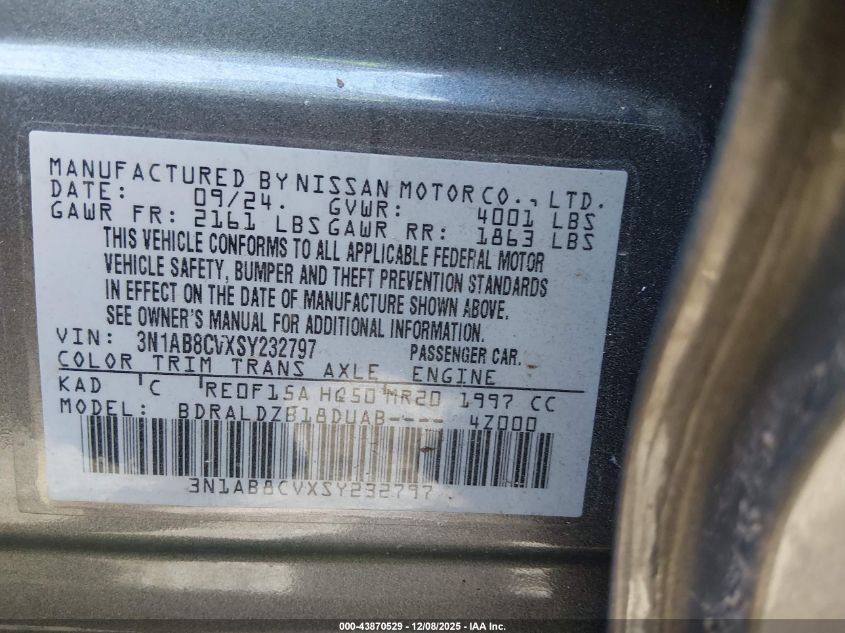 2025 NISSAN SENTRA 2025 року Бензин, 2.0, Передний привод, vin - 3N1AB8CVXSY232797 из США