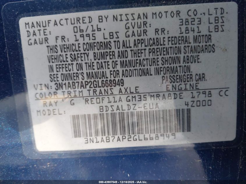 Цвет СинийЦилиндры 4Привод Передний приводVIN 3N1AB7AP2GL668949Состояние Заводится и едет (проверено)Повреждения Передняя или задняя AutoRIA