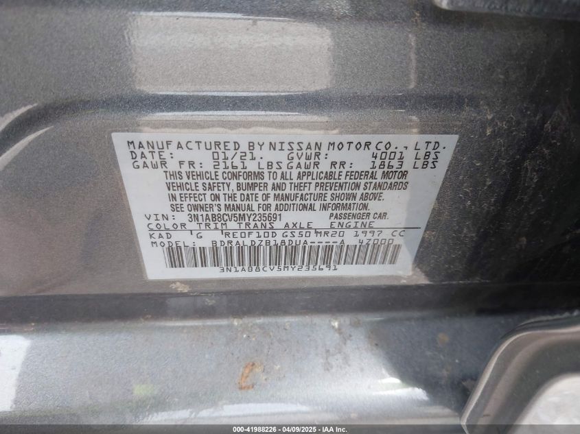 2021 NISSAN SENTRA 2021 року Бензин, 2.0, Передний привод, vin - 3N1AB8CV5MY235691 из США