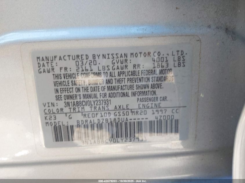 2020 NISSAN SENTRA 2020 року Бензин, 2.0, Передний привод, vin - 3N1AB8CV0LY237931 из США