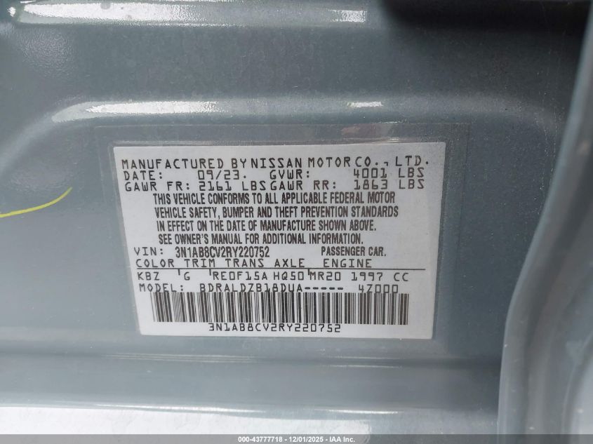 2024 NISSAN SENTRA 2024 року Бензин, 2.0, Передний привод, vin - 3N1AB8CV2RY220752 из США