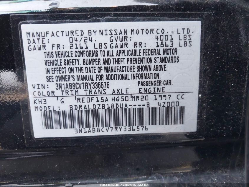 2024 NISSAN SENTRA 2024 року Бензин, 2.0, Передний привод, vin - 3N1AB8CV7RY336576 из США