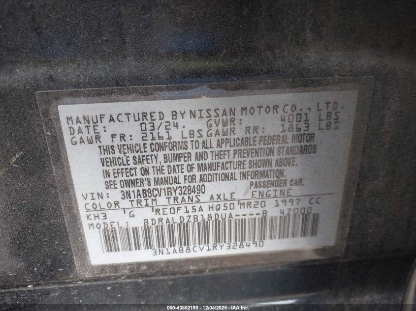 2024 NISSAN SENTRA 2024 року Бензин, 2.0, Передний привод, vin - 3N1AB8CV1RY328490 из США