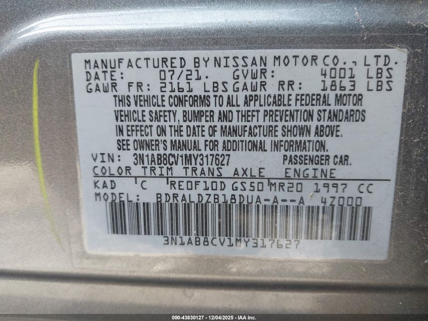 2021 NISSAN SENTRA 2021 року Бензин, 2.0, Передний привод, vin - 3N1AB8CV1MY317627 из США
