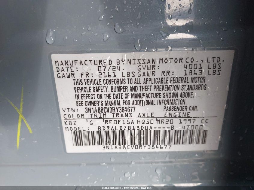 2024 NISSAN SENTRA 2024 року Бензин, 2.0, Передний привод, vin - 3N1AB8CV0RY384677 из США