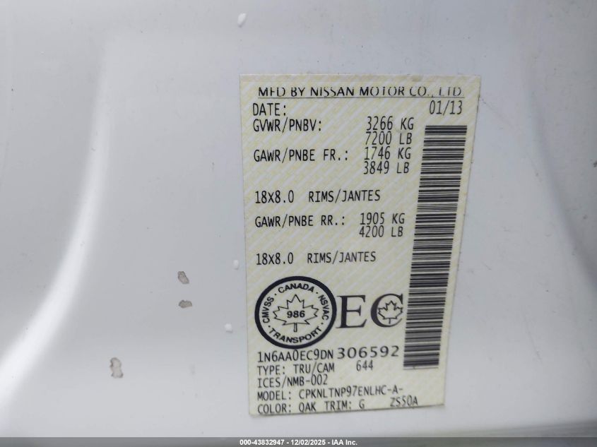 2013 NISSAN TITAN 2013 року Бензин, 5.6, Полный привод, vin - 1N6AA0EC9DN306592 из США