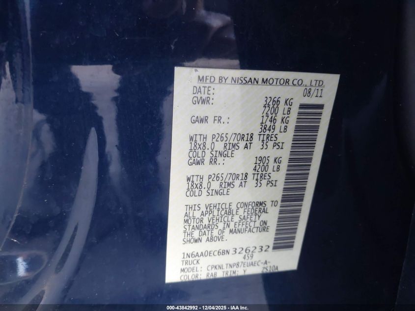 2011 NISSAN TITAN 2011 року Бензин, 5.6, Полный привод, vin - 1N6AA0EC6BN326232 из США