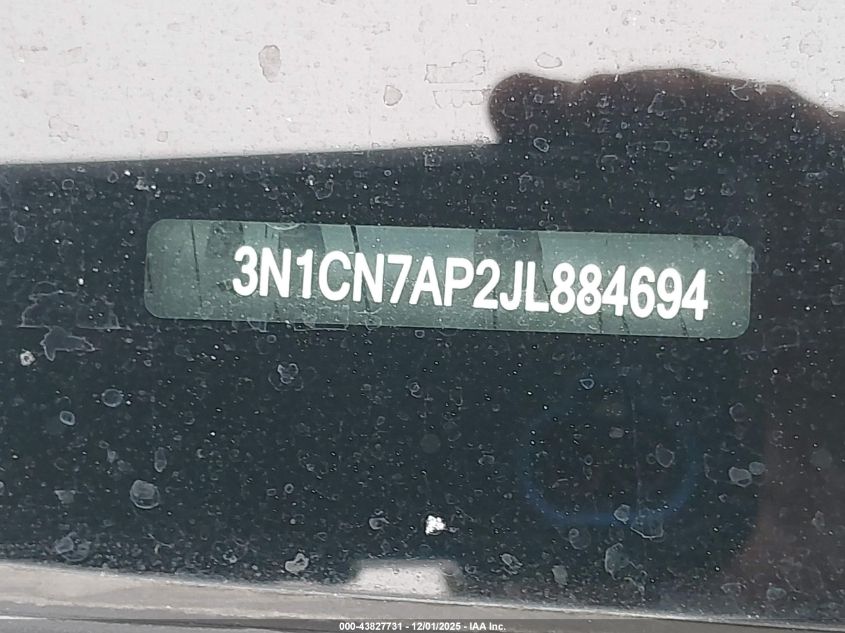 Цвет ЧерныйЦилиндры 4Привод Передний приводVIN 3N1CN7AP2JL884694Состояние Заводится и едет (проверено)Повреждения Задняя леваяДата аукциона 2025-12-09 AutoRIA
