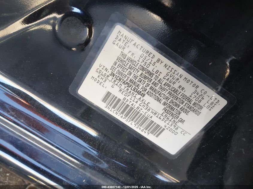 Цвет ЧерныйЦилиндры 4Привод Передний приводVIN 3N1CN7AP5FL934849Состояние Заводится и едет (проверено)Повреждения Передняя правая AutoRIA