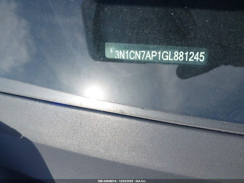 2016 NISSAN VERSA 2016 року Бензин, 1.6, Передний привод, vin - 3N1CN7AP1GL881245 из США