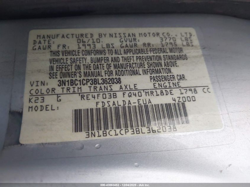 Цвет СеребряныйЦилиндры 4Привод Передний приводVIN 3N1BC1CP3BL362038Состояние СтационарноПовреждения Передняя или задняя AutoRIA