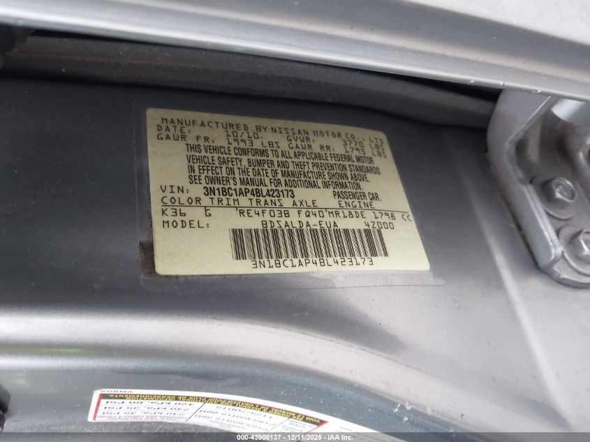 Цвет СерыйЦилиндры 4Привод Передний приводVIN 3N1BC1AP4BL423173Состояние СтационарноПовреждения Передняя или задняя AutoRIA