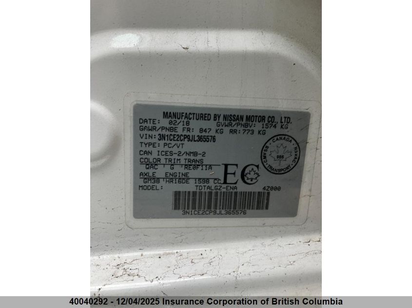 Цвет БелыйЦилиндры 4Привод Передний приводVIN 3N1CE2CP9JL365576Состояние СтационарноПовреждения ПередняяДата аукциона 2025-12-08 AutoRIA