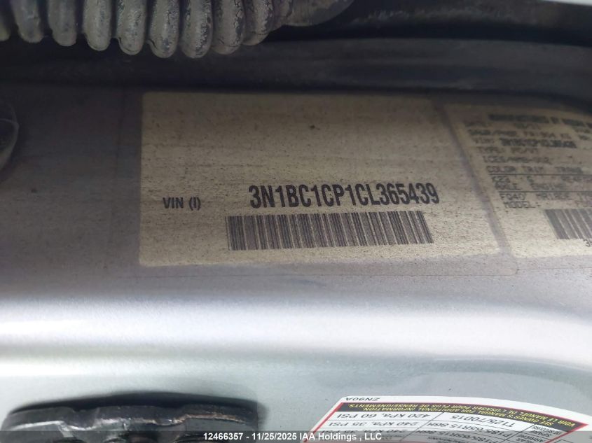 Цвет СерыйЦилиндры 4Привод Передний приводVIN 3N1BC1CP1CL365439Состояние СтационарноПовреждения ПередняяДата аукциона 2025-12-10 AutoRIA