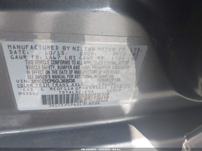 2016 NISSAN VERSA NOTE S