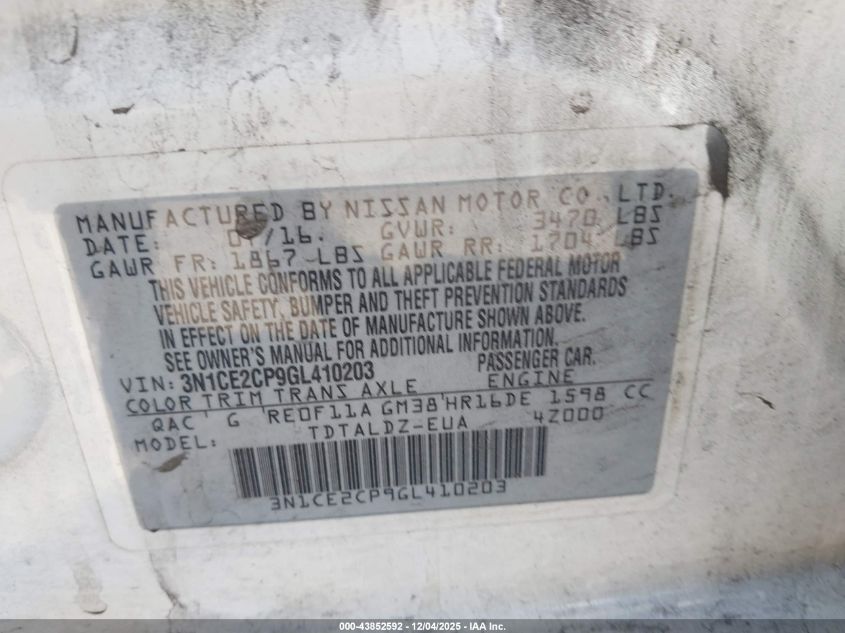 2016 NISSAN VERSA NOTE 2016 року Бензин, 1.6, Передний привод, vin - 3N1CE2CP9GL410203 из США