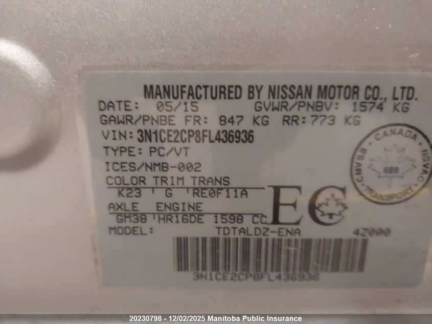 2015 NISSAN VERSA NOTE 2015 року Бензин, , Передний привод, vin - 3N1CE2CP8FL436936 из США