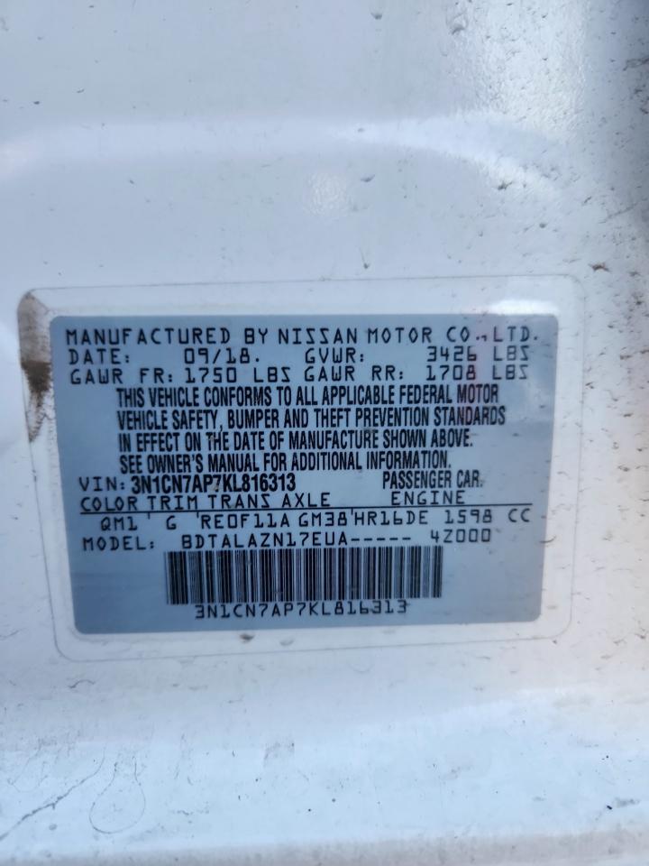 2019 NISSAN VERSA 2019 року Бензин, 1.6, , vin - 3N1CN7AP7KL816313 из США