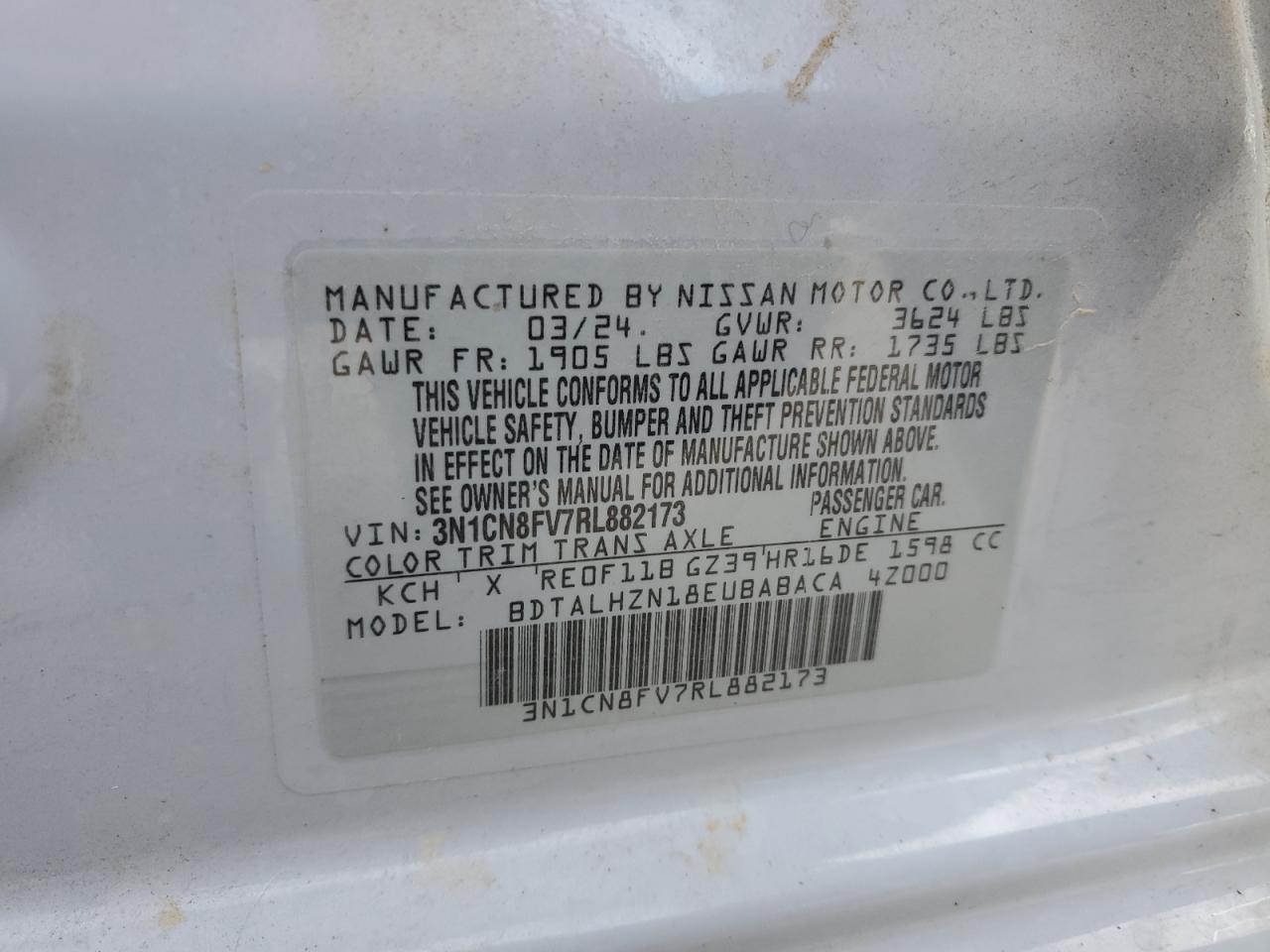 2024 NISSAN VERSA 2024 року Бензин, 1.6, , vin - 3N1CN8FV7RL882173 из США