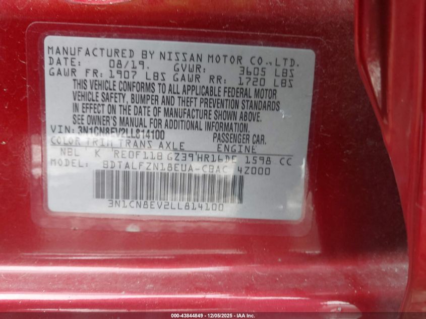 2020 NISSAN VERSA 2020 року Бензин, 1.6, Передний привод, vin - 3N1CN8EV2LL814100 из США