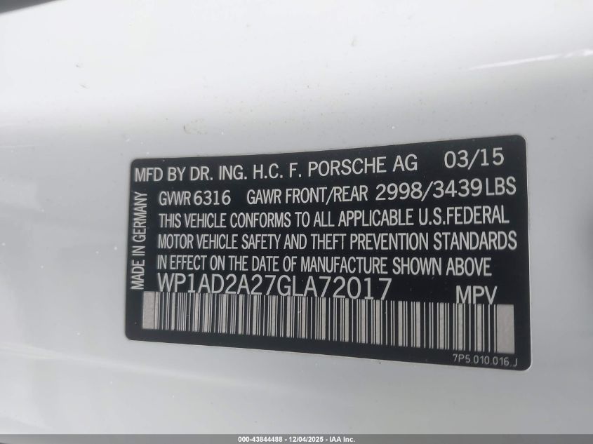 2016 PORSCHE CAYENNE 2016 року Бензин, 3.6, Полный привод, vin - WP1AD2A27GLA72017 из США