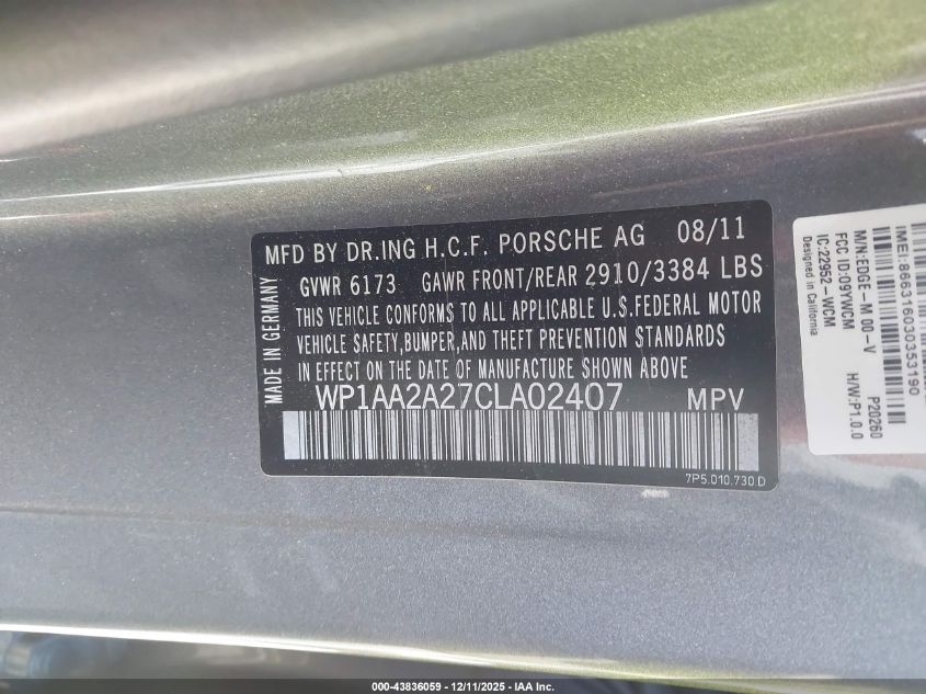 2012 PORSCHE CAYENNE 2012 року Бензин, 3.6, Полный привод, vin - WP1AA2A27CLA02407 из США