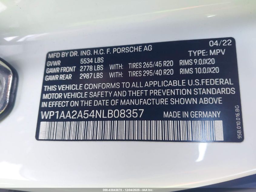 Цвет БелыйЦилиндры 4Привод Полный приводVIN WP1AA2A54NLB08357Состояние СтационарноПовреждения Передняя или задняя AutoRIA