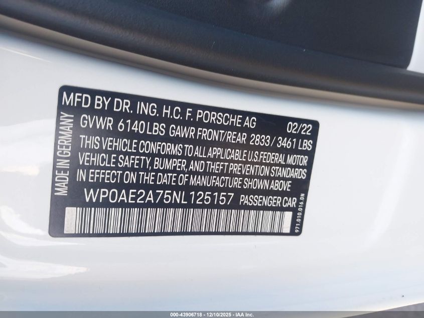 2022 PORSCHE PANAMERA 2022 року Гибрид, 2.9, Полный привод, vin - WP0AE2A75NL125157 из США