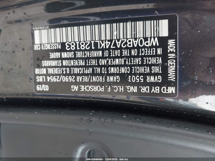 2019 PORSCHE PANAMERA 2019 року Бензин, 2.9, Полный привод, vin - WP0AB2A74KL128183 из США