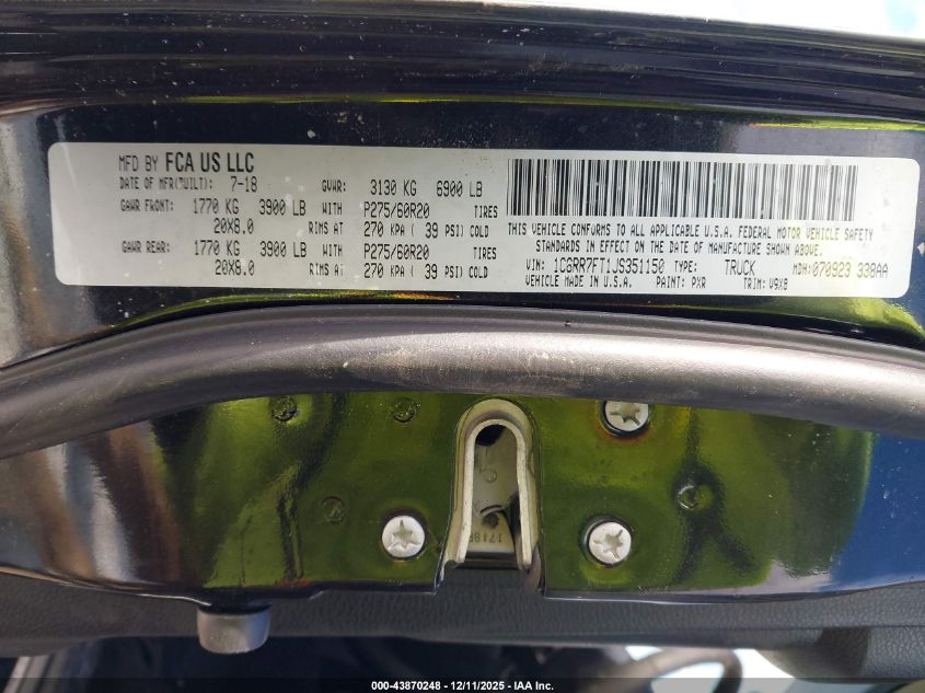 2018 RAM 1500 2018 року Бензин, 5.7, Полный привод, vin - 1C6RR7FT1JS351150 из США