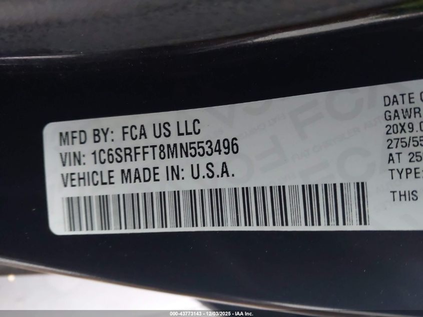 2021 RAM 1500 2021 року Бензин, 5.7, Полный привод, vin - 1C6SRFFT8MN553496 из США