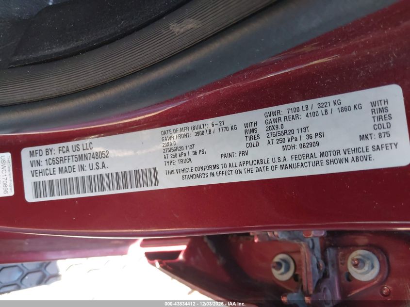 2021 RAM 1500 2021 року Бензин, 5.7, Полный привод, vin - 1C6SRFFT5MN748052 из США