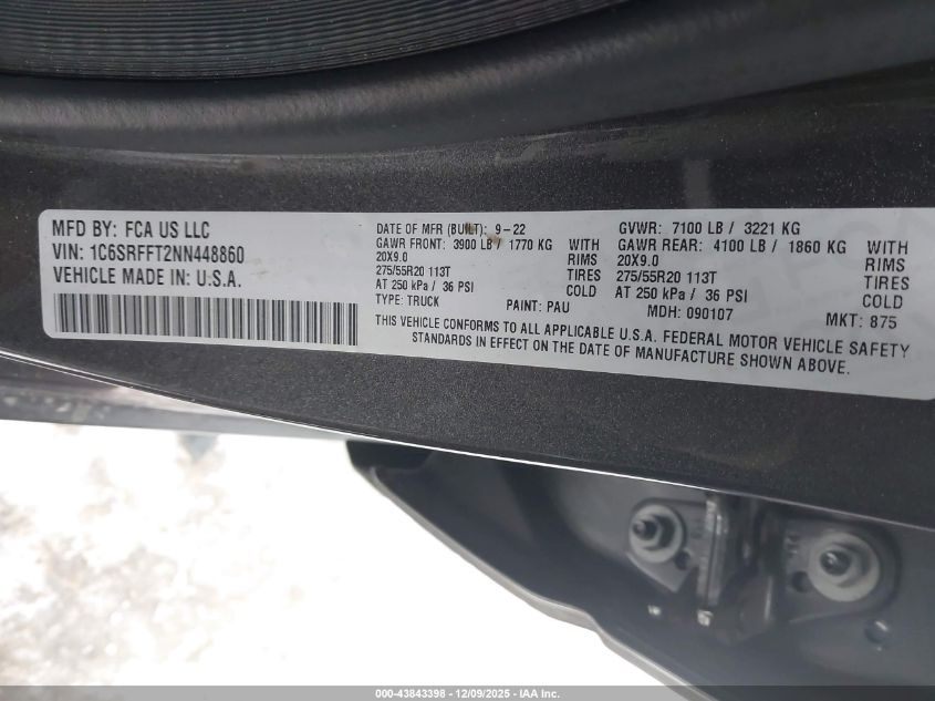 2022 RAM 1500 2022 року Бензин, 5.7, Полный привод, vin - 1C6SRFFT2NN448860 из США