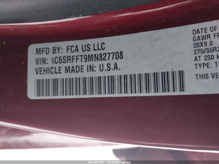 Цвет БургундияЦилиндры 8Привод Полный приводVIN 1C6SRFFT9MN827708Состояние СтационарноПовреждения Левая сторона AutoRIA