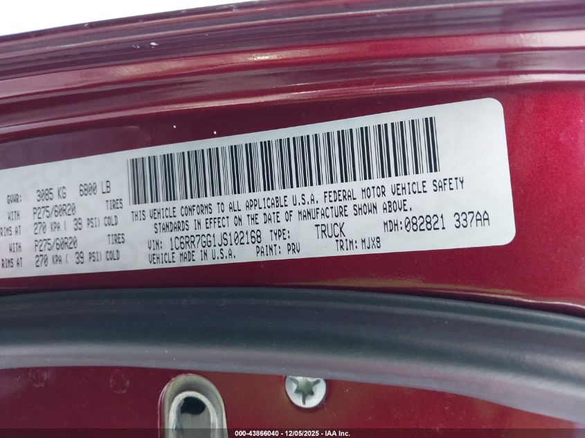 2018 RAM 1500 2018 року Бензин, 3.6, Полный привод, vin - 1C6RR7GG1JS102168 из США