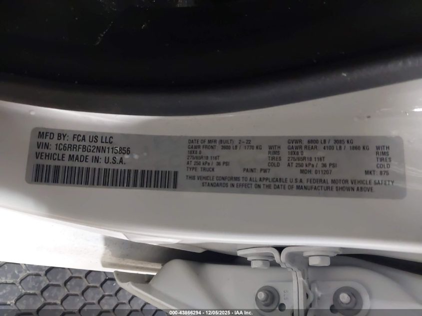 2022 RAM 1500 2022 року Бензин, 3.6, Полный привод, vin - 1C6RRFBG2NN115856 из США