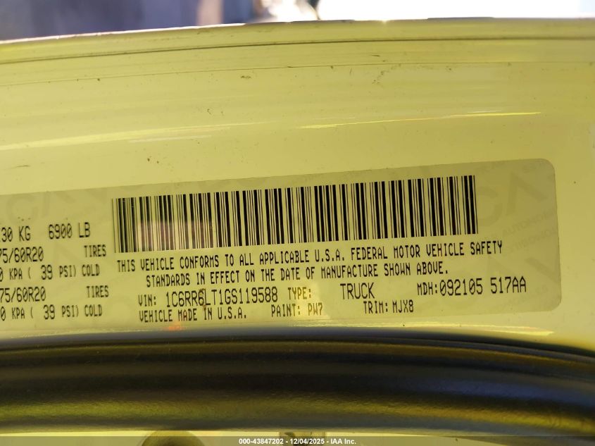 2016 RAM 1500 2016 року Бензин, 5.7, , vin - 1C6RR6LT1GS119588 из США