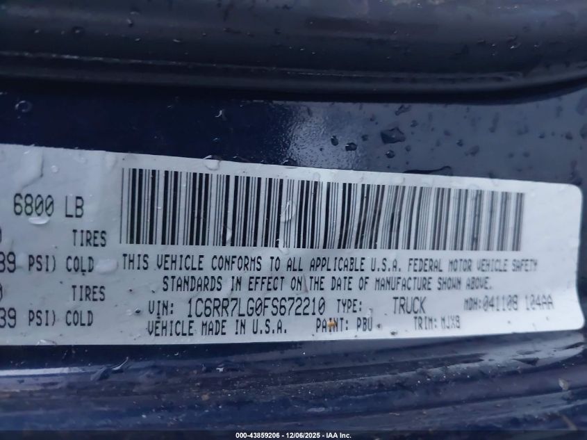 Цвет СинийЦилиндры 6Привод Полный приводVIN 1C6RR7LG0FS672210Состояние СтационарноПовреждения Опрокидывание AutoRIA