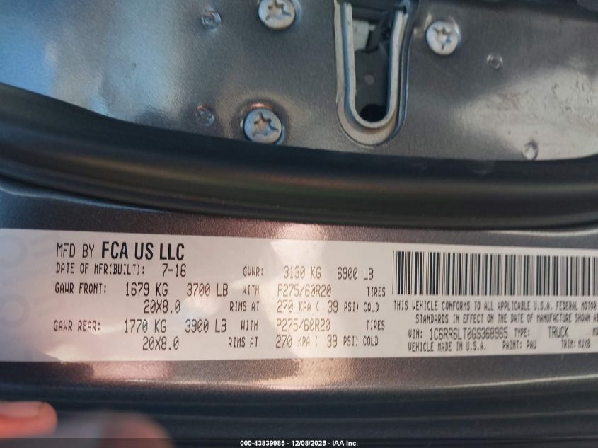 2016 RAM 1500 2016 року Бензин, 5.7, , vin - 1C6RR6LT0GS368965 из США