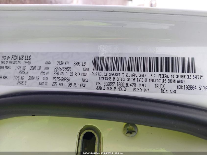 2016 RAM 1500 2016 року Бензин, 5.7, Полный привод, vin - 3C6RR7LT0GG181478 из США